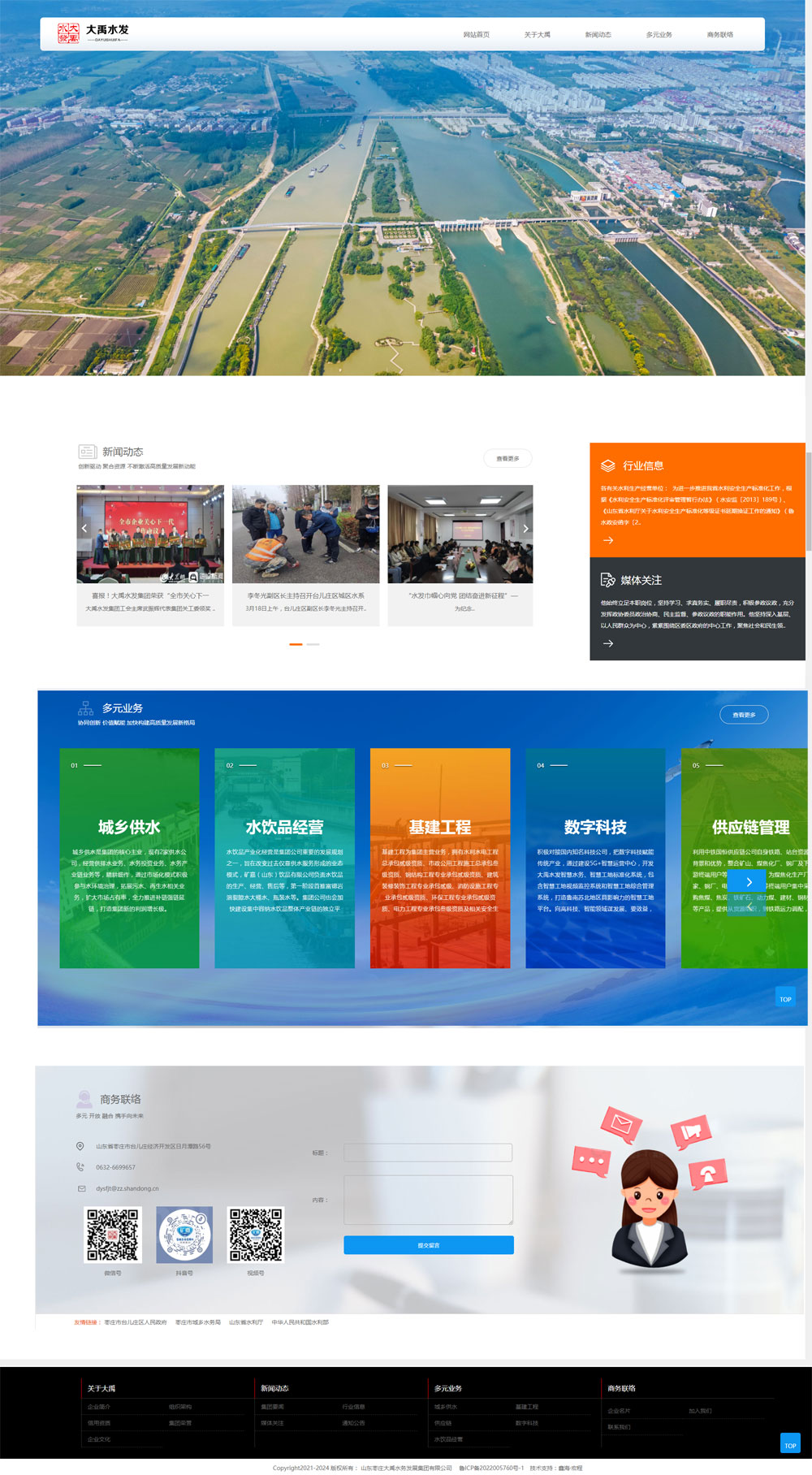 山東棗莊大禹水務(wù)發(fā)展集團(tuán)有限公司(簡(jiǎn)稱大禹水發(fā)集團(tuán))成立于 2021 年 10 月,始創(chuàng)于 1962 年臺(tái)兒莊區(qū)成立的自來(lái)水服務(wù)處,系臺(tái)兒莊區(qū)屬國(guó)有企業(yè)。下設(shè)棗莊大禹水利工程有限公司、棗莊市潤(rùn)禹水務(wù)供水有限公司、棗莊大禹供水有限公司、棗莊潤(rùn)源建設(shè)工程有限公司、棗莊宏禹數(shù)字科技有限公司、山東海宸鋼結(jié)構(gòu)工程有限公司 6 家子公司。擁有水利水電工程總承包貳級(jí)資質(zhì)、市政公用工程施工總承包叁級(jí)資質(zhì)、鋼結(jié)構(gòu)工程專業(yè)承包貳級(jí)資質(zhì)、消防設(shè)施工程專業(yè)承包貳級(jí)資質(zhì)、建筑裝修裝飾工程專業(yè)承包貳級(jí)、環(huán)保工程專業(yè)承包貳級(jí)資質(zhì)。